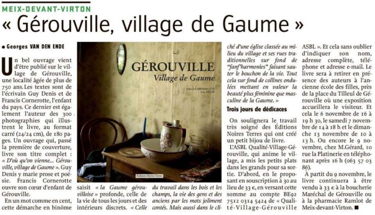 Le 6 novembre prochain, sortira un bel ouvrage « D’où qu’on vienne… Gérouville, village de Gaume ».