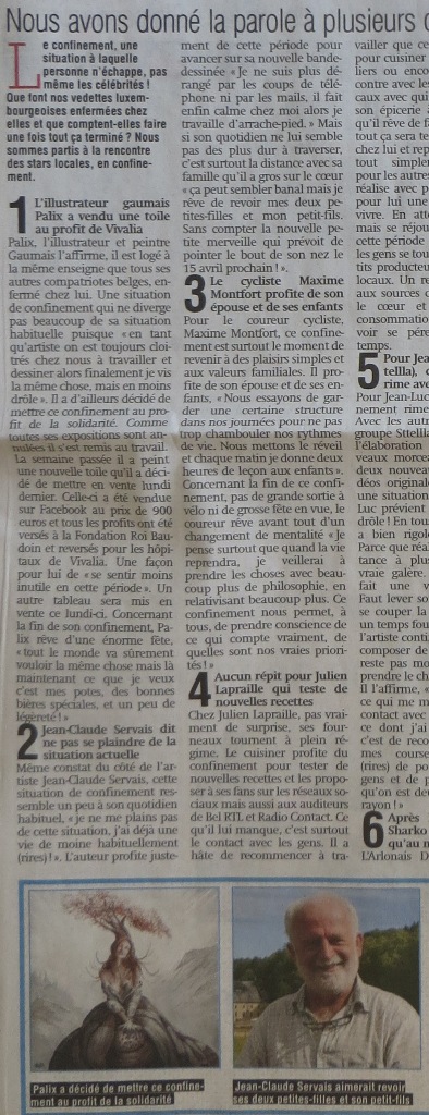 Ce jour, le journal « La Meuse – Luxembourg » a donné la parole à quelques personnalités de notre province : Palix, Jean-Claude, Maxime Montfort, Julien Lapraille, Jean-Luc Fonck, Sharko.