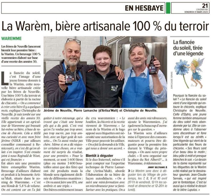 A l’origine de « La Fiancée du Soleil », deux frères passionnés, Jérôme et Christophe De Neuville, qui ont repris une vieille recette, datant de 1935, aux accents de chicorée.