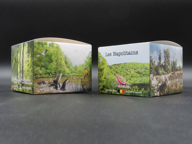 À l’occasion des 40 ans de l’ASBL, les boites de Napolitains se parent d’illustrations de Jean-Claude.