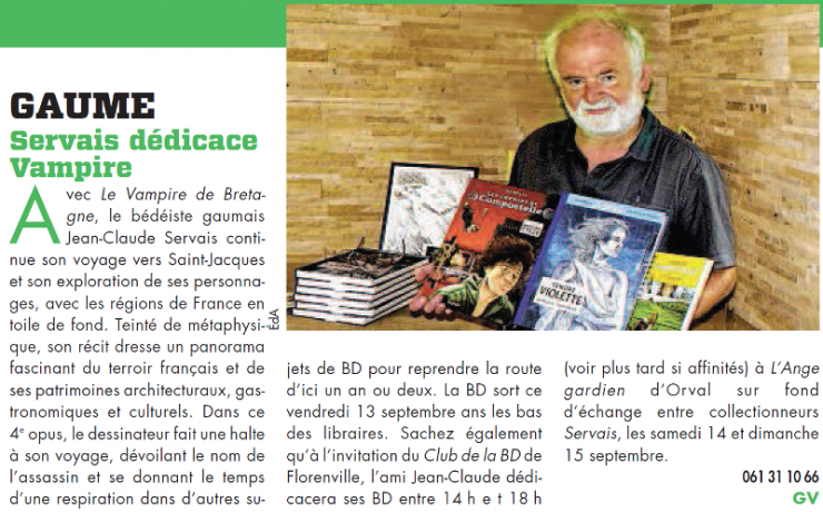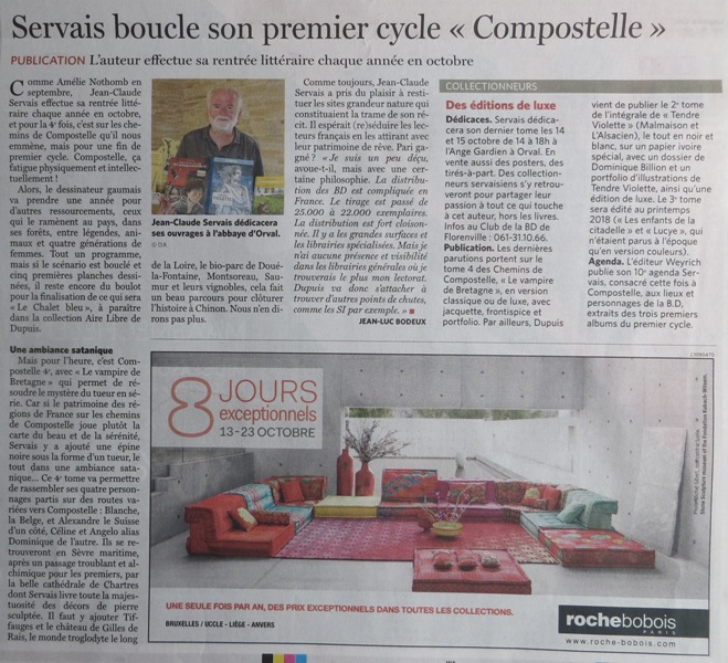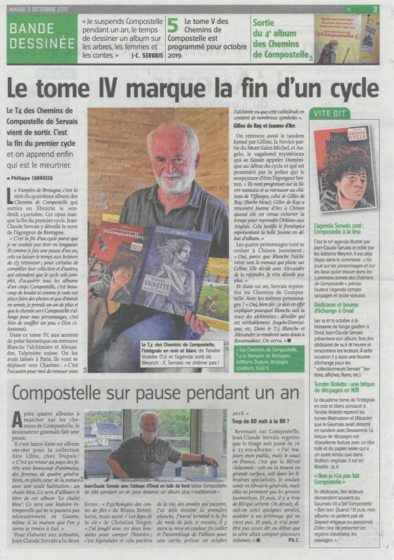 Quelques articles parus dans la presse parlant du quatrième volet des Chemins de Compostelle de Jean-Claude Servais : Le Vampire de Bretagne et de la sortie d'un double CD.