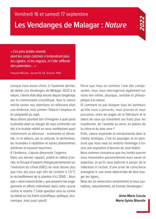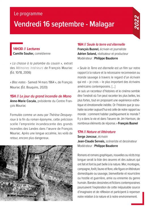 Le programme complet sur le site de Malagar.
