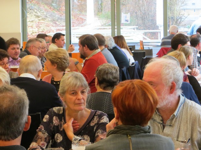 Nous étions plus de 90 à participer au repas-rencontre et à la conférence-discussion autour du « chalet bleu ».