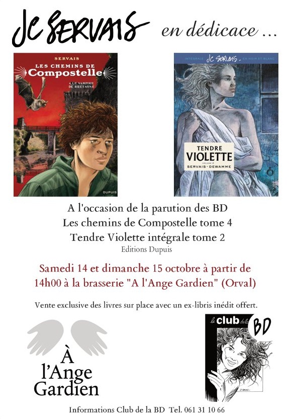 Les samedi 14 et dimanche 15 octobre prochain, à L'Auberge de l’ange gardien à Orval (Florenville), sortie du tome 4 des Chemins de Compostelle et du tome 2 de l'intégrale Tendre Violette.